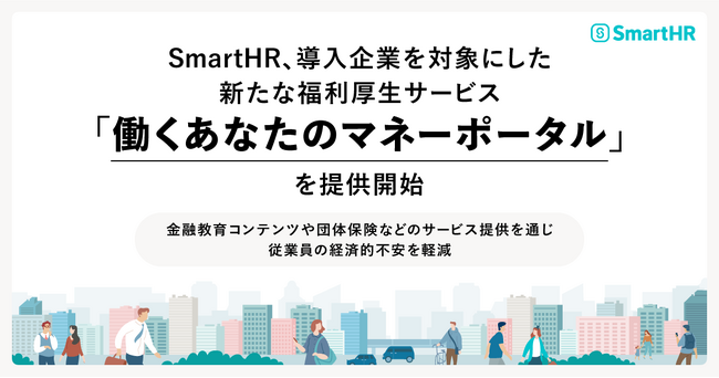 株式会社SmartHR(本社:東京都港区、代表取締役CEO:芹澤 雅人)が運営するクラウド人事労務ソフト「SmartHR(スマートエイチアール)」は、導入企業を対象にした福利厚生サービス「働くあなたのマネーポータル」を10月14日より提供開始します。「働くあなたのマネーポータル」は、従業員の「お金の健康」を支える新たなプラットフォームとして従業員の経済的不安を軽減します。