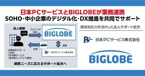 日本PCサービスとBIGLOBEが業務連携 SOHO・中小企業のデジタル化・DX推進を共同でサポート