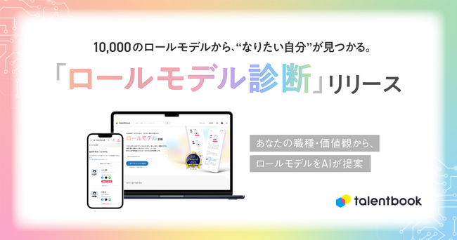 ロールモデル就活・転職サイト「talentbook」及び、法人向け採用ブランディング支援サービスを提供するtalentbook株式会社(本社:東京都渋谷区、共同代表取締役:大堀航/大堀海、以下「当社」)は、1万以上のロールモデルの中から自分に最適な"憧れの先輩"を発見できる「ロールモデル診断」をリリースいたしました。経歴や価値観に関する簡単な質問に答えるだけで、AIが最適なロールモデルを提案し、「この人のように働きたい」と思える先輩との出会いを創出します。