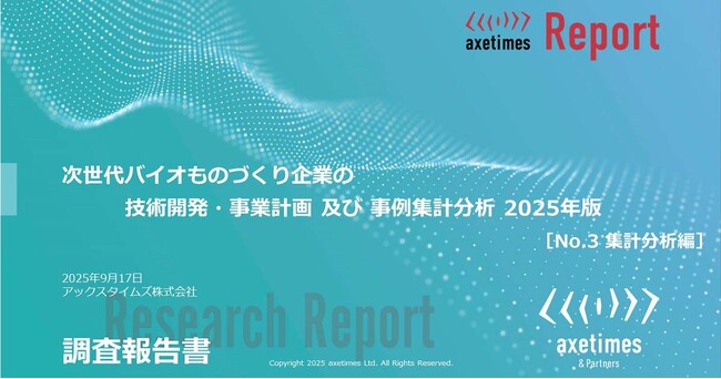 ビジネス解像度を高めるリサーチ情報サービスを展開するアックスタイムズ株式会社(所在地:大阪府大阪市中央区、代表取締役:橋本規宏)は、バイオものづくり/バイオエコノミー領域におけるスタートアップ・ベンチャーや大企業の事業・技術開発トレンドを見える化した調査報告書「次世代バイオものづくり企業の技術開発・事業計画 及び 事例集計分析 2025年版[No.3 集計分析編]」を、2025年9月17日にリリースしたことをお知らせします。
