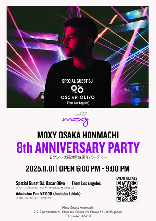 マリオット・インターナショナルが展開するライフスタイルホテル「モクシー大阪本町」(大阪市中央区/総支配人:溝口シェリー)は、2025年11月1日(土)に開業8周年を記念したアニバーサリーパーティーを開催します。