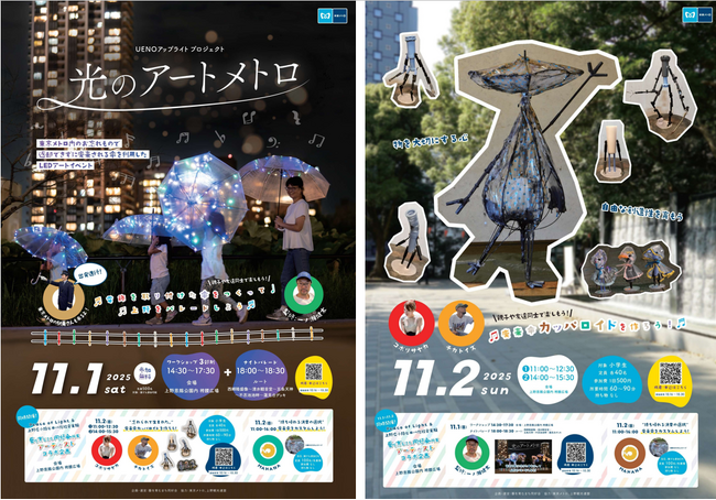 東京地下鉄株式会社(本社:東京都台東区、代表取締役社長:小坂 彰洋、以下「東京メトロ」)は、11月1日(土)に一般社団法人上野観光連盟(理事長:長岡信裕)が主催する「Peace of Light(ピースオブライト)」と11月2日(日)に上野まちづくり協議会(会長:佐藤一也)が主催する「上野広小路ヒロバ化社会実験」にて、東京メトロ内の遺失物として廃棄予定だったビニール傘を題材にしたワークショップを、藝を育むまち同好会(代表理事:山田勇魚、以下「藝育会」)と共に開催します。
