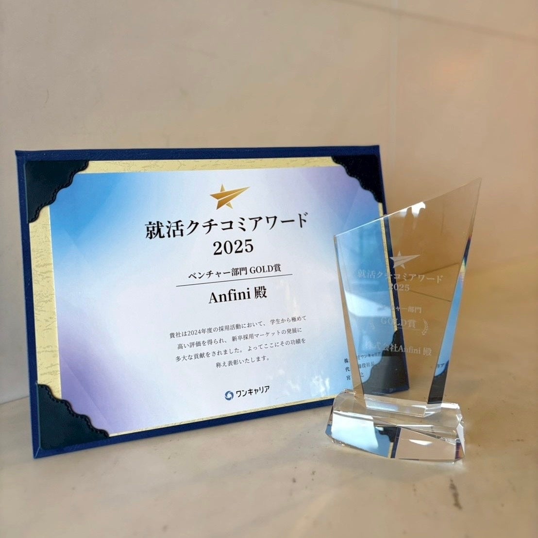 株式会社Anfini(本社:東京都港区、代表取締役:橋本 純)は、2025年10月16日(木)に京都市勧業館みやこめっせ(京都府京都市左京区)で開催された、株式会社ワンキャリア主催の採用担当者向け大型カンファレンス『採用ウルトラキャンプ2025』に、「ONE CAREER 就活クチコミアワード2025」Gold受賞企業として授賞式に参加いたしました。