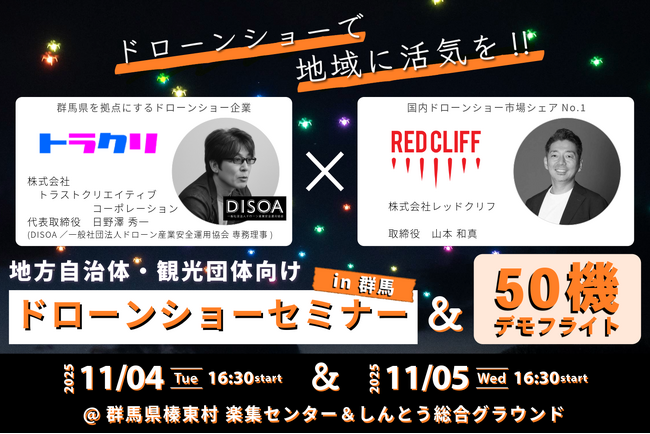 タイトル:ドローンショーが生み出す地域経済の新潮流 ~観光・イベントで人を呼び込む空のエンターテインメント~開催日時:2025年11月4日(火)5日(水)16:30~18:30