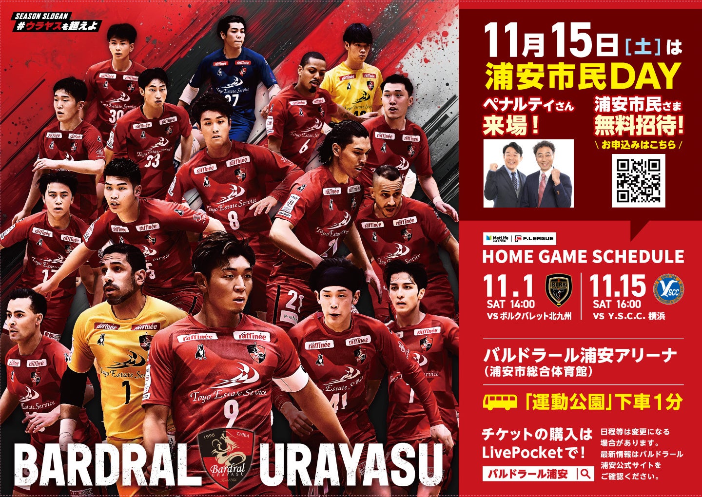 11月15日(土)【うらやす財団×バルドラール浦安】ホームゲーム浦安市民招待『浦安市民DAY』の実施について