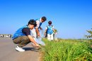 開会式で挨拶をするCSV推進課長 木村 美瑛町の景色を楽しみながら清掃する様子
