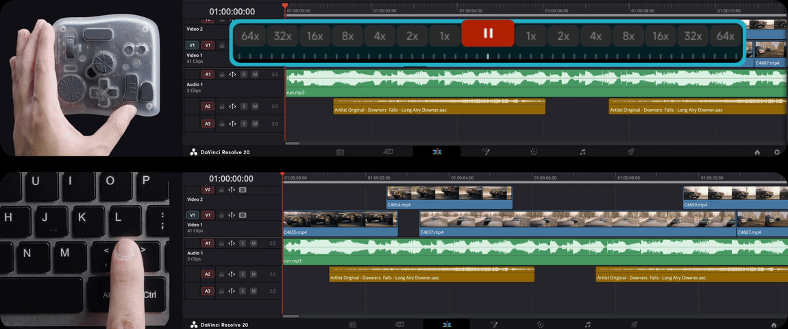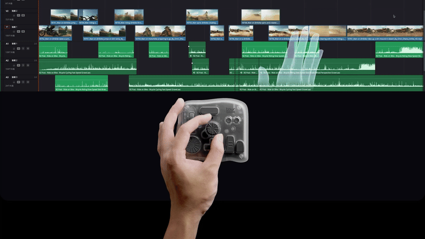 TourBox Consoleの新バージョンではDaVinci Resolve向けの新機能をリリースしました:マウスカーソルの位置によるパラメータ調整、慣性効果があるノブ操作、倍速対応のプレビュー、さらにワークスペース認識も搭載し、トリミングから色調補正、さらにエクスポートまで、あらゆる操作を片手で統合します。