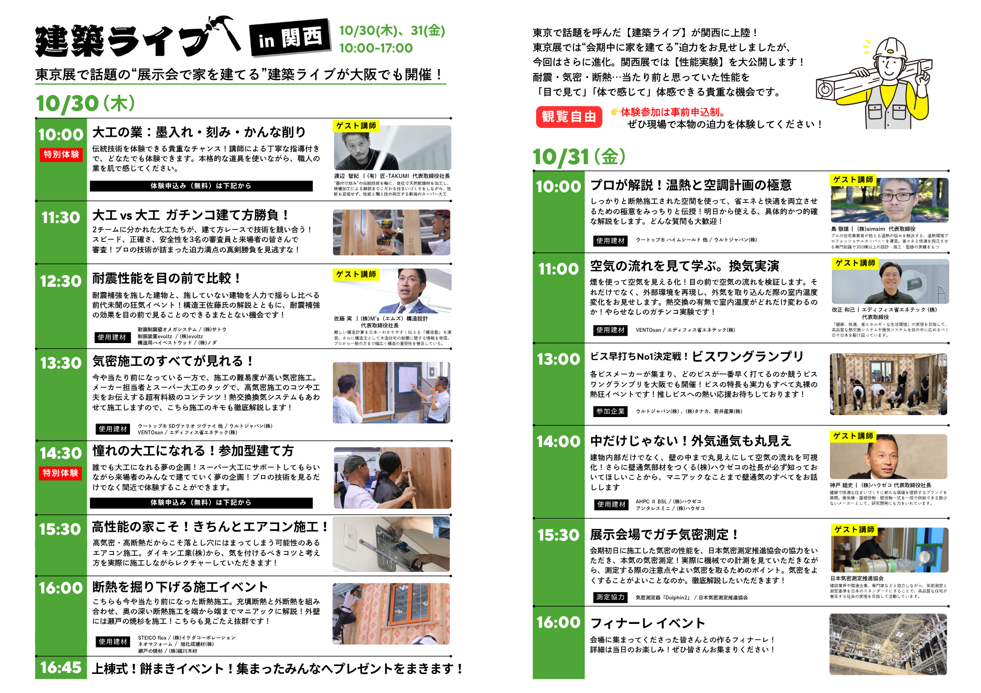 東京展で話題の“展示会で家を建てる”建築ライブが大阪でも開催。関西展では【性能実験】を中心に実施。耐震・気密・断熱などなかなか見られない性能を「目で見て」
