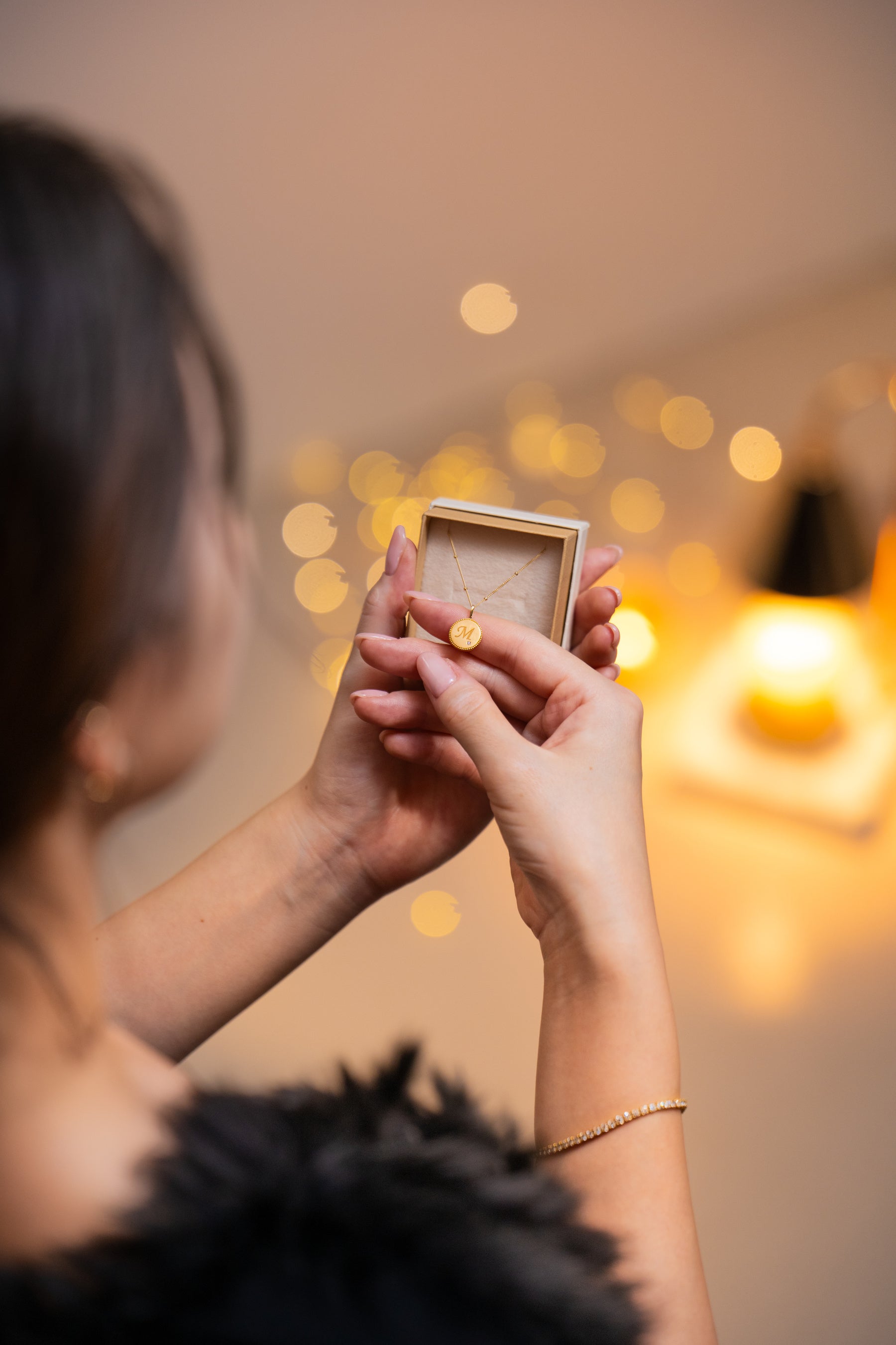 イニシャルコインペンダントトップのみで選べるため、既にお持ちのチェーンと組み合わせて、自分らしいスタイルを楽しめます。