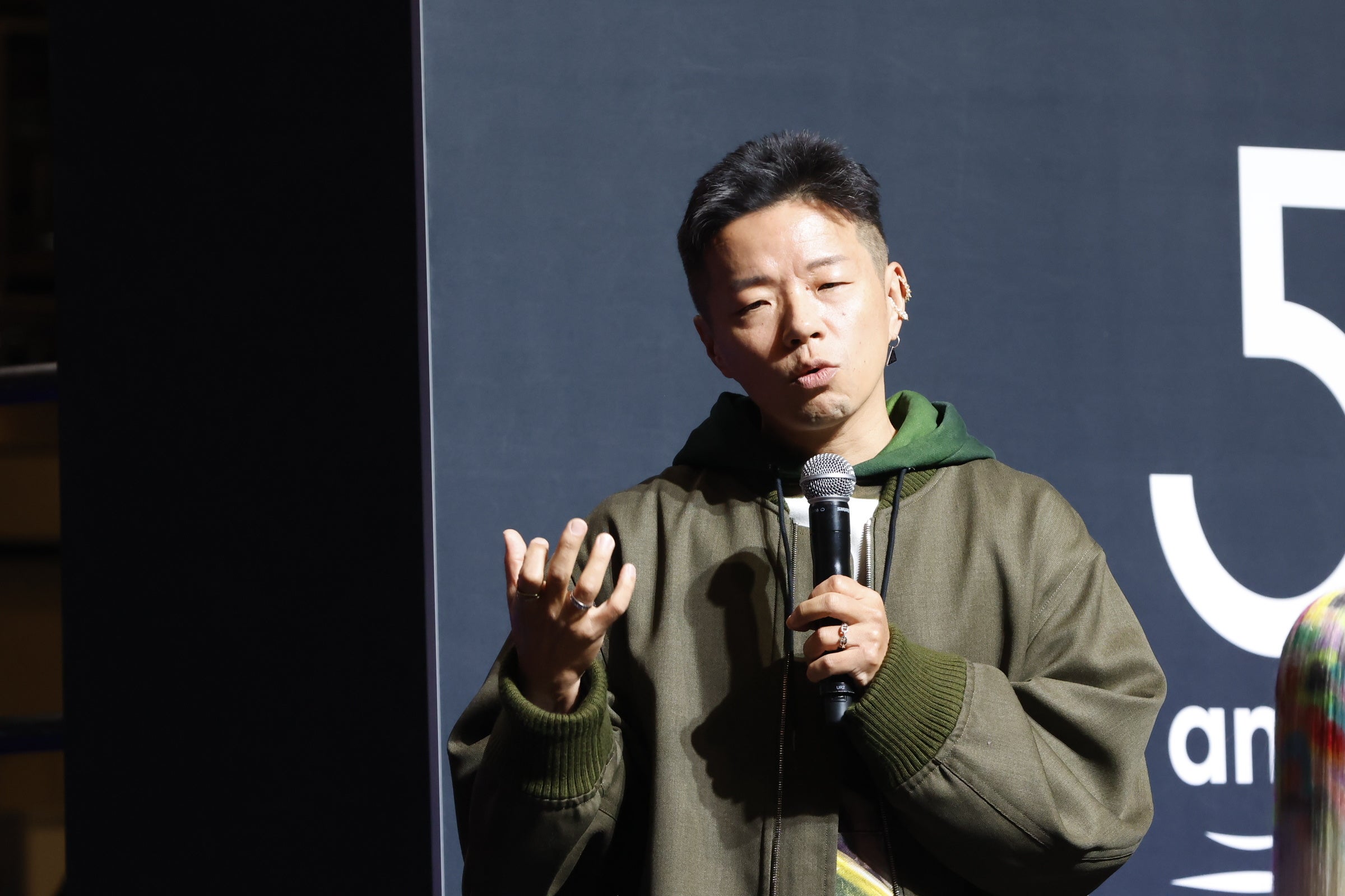 【グループCEO 福井敏浩より創業50周年にかける想いと今後の展望を発表】グループCEO 福井敏浩より、創業50周年にかける想いと今後の展望についてプレゼンテーションを行いました。冒頭、社史について触れた後、「『人生に、新しい美の体験を。』という使命のもと、美容の可能性を広げる歩みを続けています。この50周年は、過去を振り返るだけでなく、次の50年への出発点と捉えています」と話しました。また、今後の展望について「美容師との共創を軸として、業界を超えて”美の体験”を届け、人と社会を動かすNo.1のビューティーカンパニーを目指し、加えて”kawaii”という感性を日本から世界へ広げていきます。」と語りました。