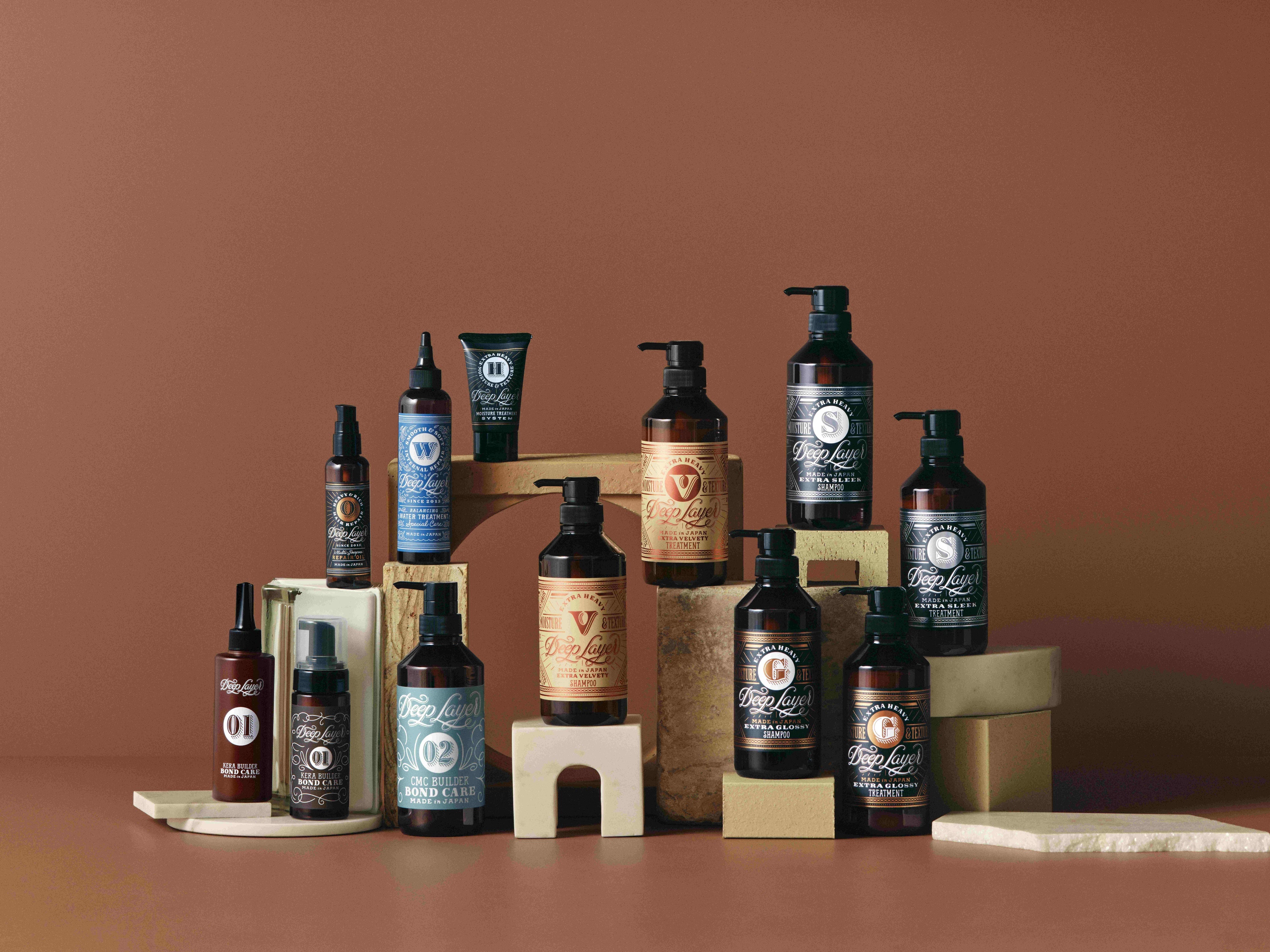 DeepLayer(ディープレイヤー)現代の多様なヘア施術による髪のダメージに対応し、髪本来の健やかな土台を整えることを目指して開発された「ディープレイヤー ボンドケアライン」。髪内部の強度やうるおいを高め、外的ストレスから守ることで、カラーやパーマ後も美しい髪を維持します。