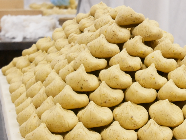 厳選した国産栗と砂糖のみを使用し、一つひとつ茶巾絞りにした素朴な和菓子。中山道の街道文化の中で磨き抜かれた中津川市の銘菓です。今回のマルシェでは1個から購入できるので、店ごとに異なる味わいをぜひ食べ比べてみてください。