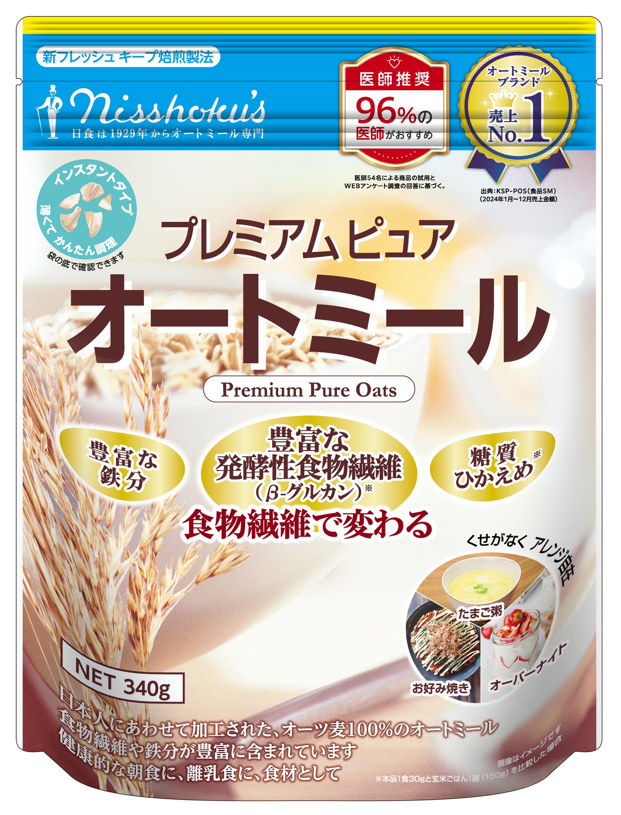 そんな中、“主食から食物繊維を摂る”という新常識に対応すべく、日本食品製造合資会社(本社:北海道札幌市、代表社員:戸部 謙ルイス、以下「日食」)は、主力商品「プレミアムピュアオートミール」など主要シリーズを全面リニューアル。新たに「フレッシュキープ焙煎製法」や「超高バリア包材」を導入し、おいしさが長持ちする“続けられる健康主食”として、2025年10月中旬より順次出荷を開始します。