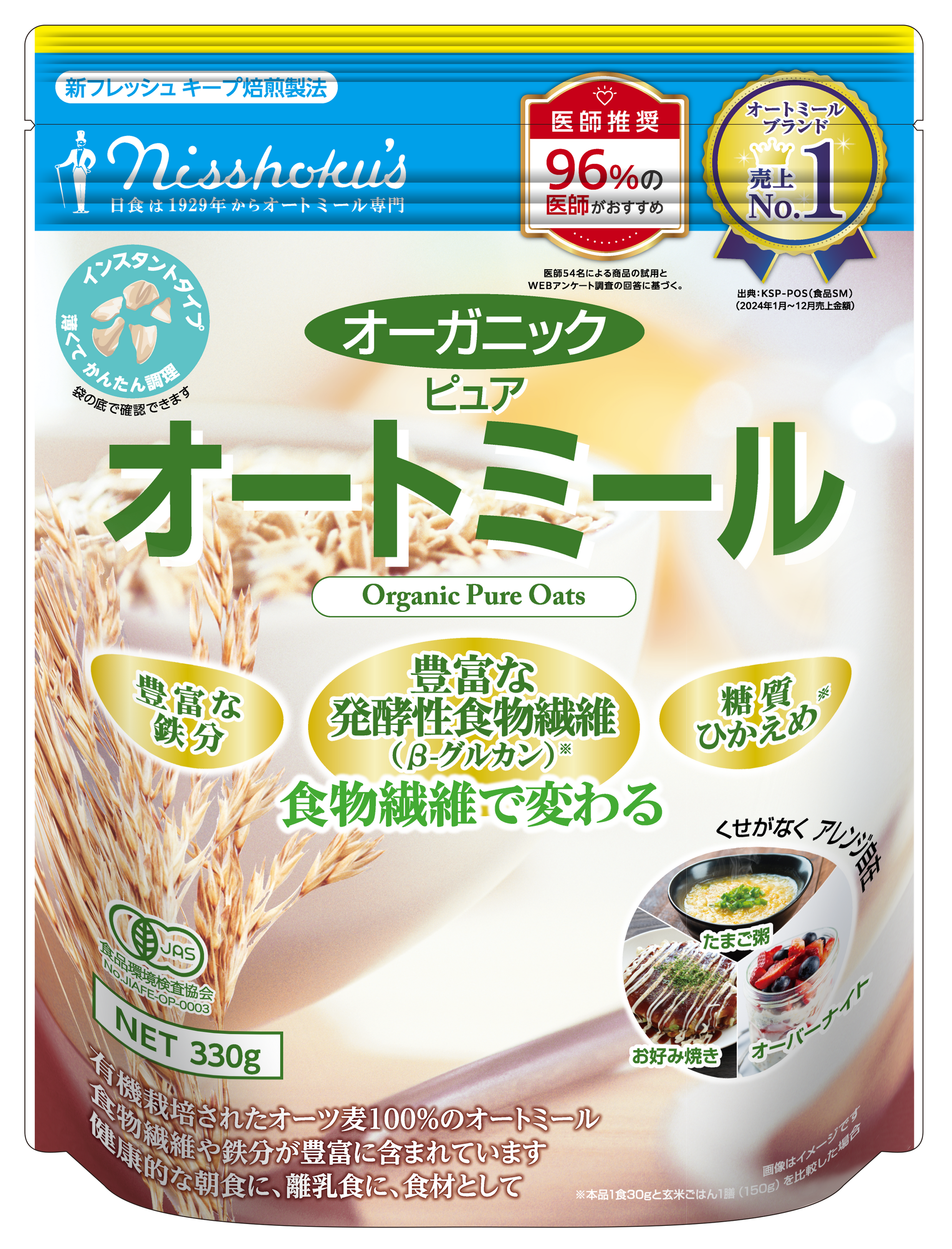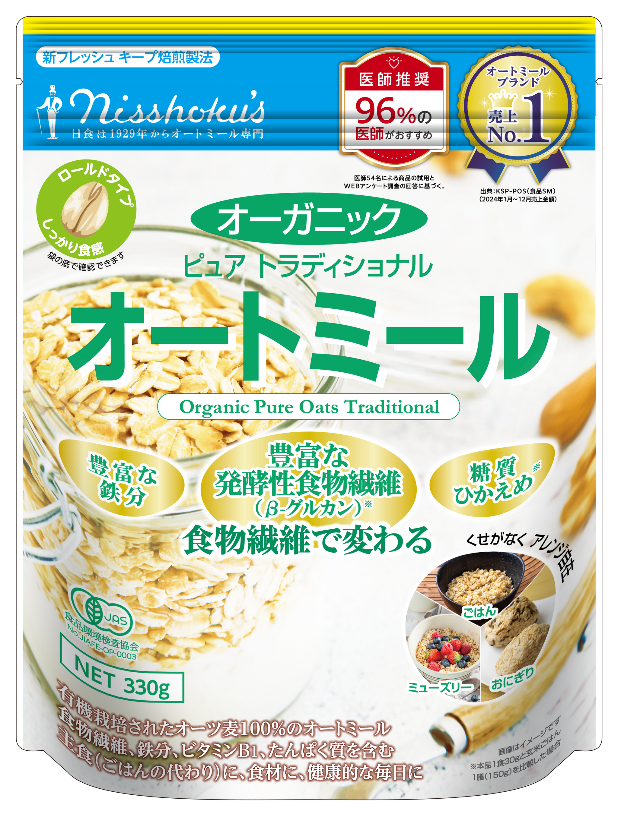 食物繊維は「野菜より主食から」摂る時代へ。2025年改訂「食物繊維摂取基準」を背景に―主食から食物繊維を摂る提案、日食オートミールが全面リニューアル。新製法「フレッシュキープ焙煎製法」でおいしさ長持ち