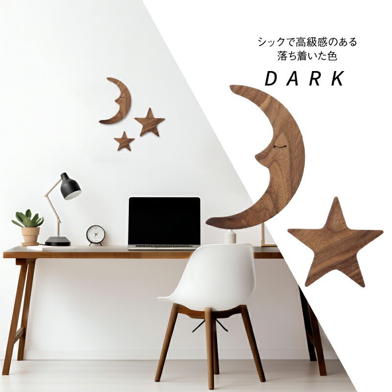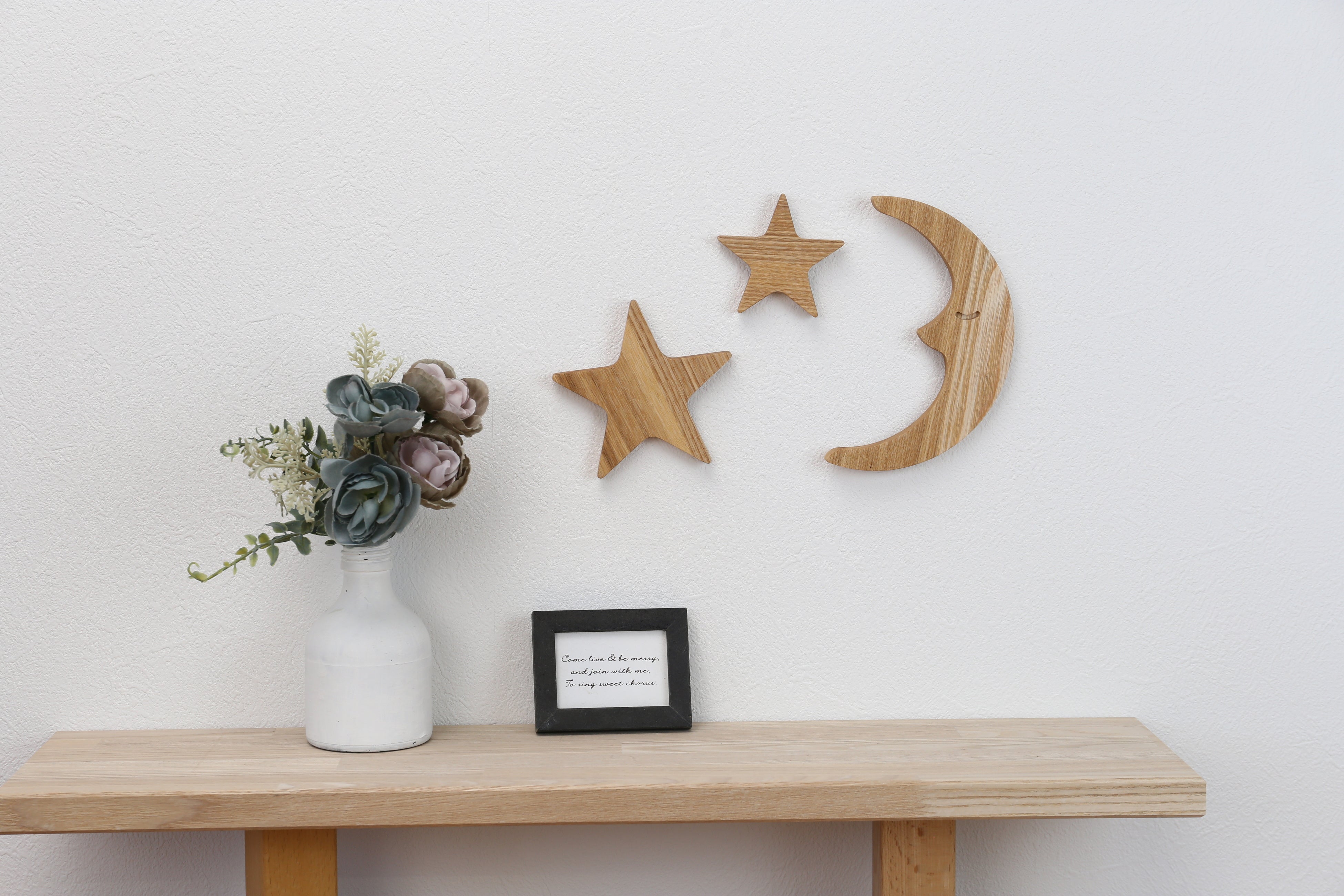 ウッドオーナメント-月・星-月と星の組み合わせは、夢を叶えるお守りにも最適なモチーフです。