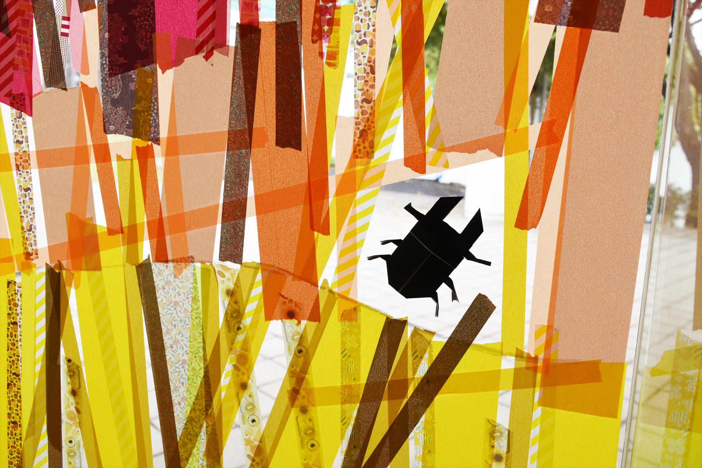 マスキングテープや折り紙でキッズコーナーの窓を装飾
