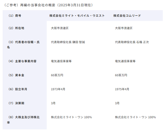 西日本エリアにおけるモバイル事業及び NW事業を担う子会社2社を1社に集約し、一元的に対応することで効率化を図りグループ全体へ貢献するとともに、ソリューション分野における2社の強みを活かした事業展開を目指すため