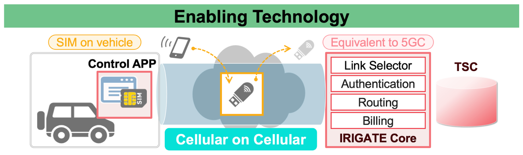 IRIGATEは、AECCにおいて、車のライフサイクル全体での柔軟で安定した通信の提供を目指し、自動車メーカーが中心となって開発しているコネクテッドカー向けの新しい通信プラットフォームです。クラウド上のIRIGATEコアとIRIGATE端末が接続を確立することで、認証、課金、ルーティングなど、通信事業者と同等の管理と運用を可能にします。ソラコムは、IoTプラットフォームSORACOMで培ったクラウド上に迅速に展開できるモバイルコアの技術を提供しています。