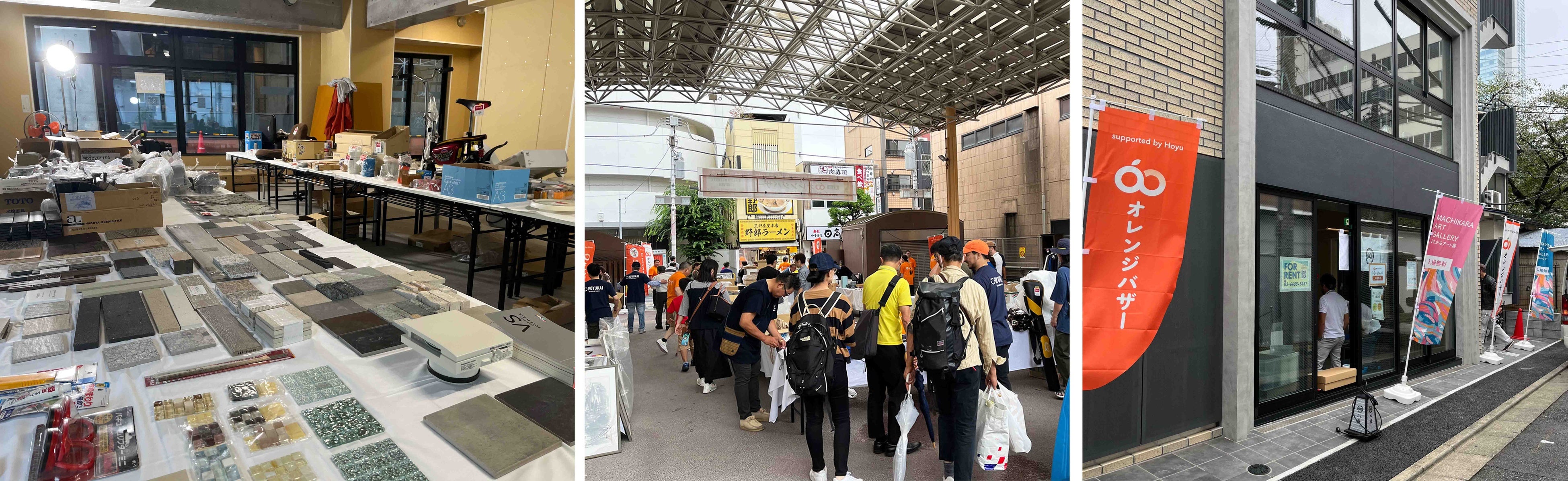 「フェイスネットワーク蜂友会」所属の協力業者の皆様が、使わなくなったタイルや木材、工具をはじめとした建築資材を持ち寄り、無料もしくは安価でご来場者に提供する、資源の有効活用と地域の皆様との交流を目的としたフリーマーケットです。