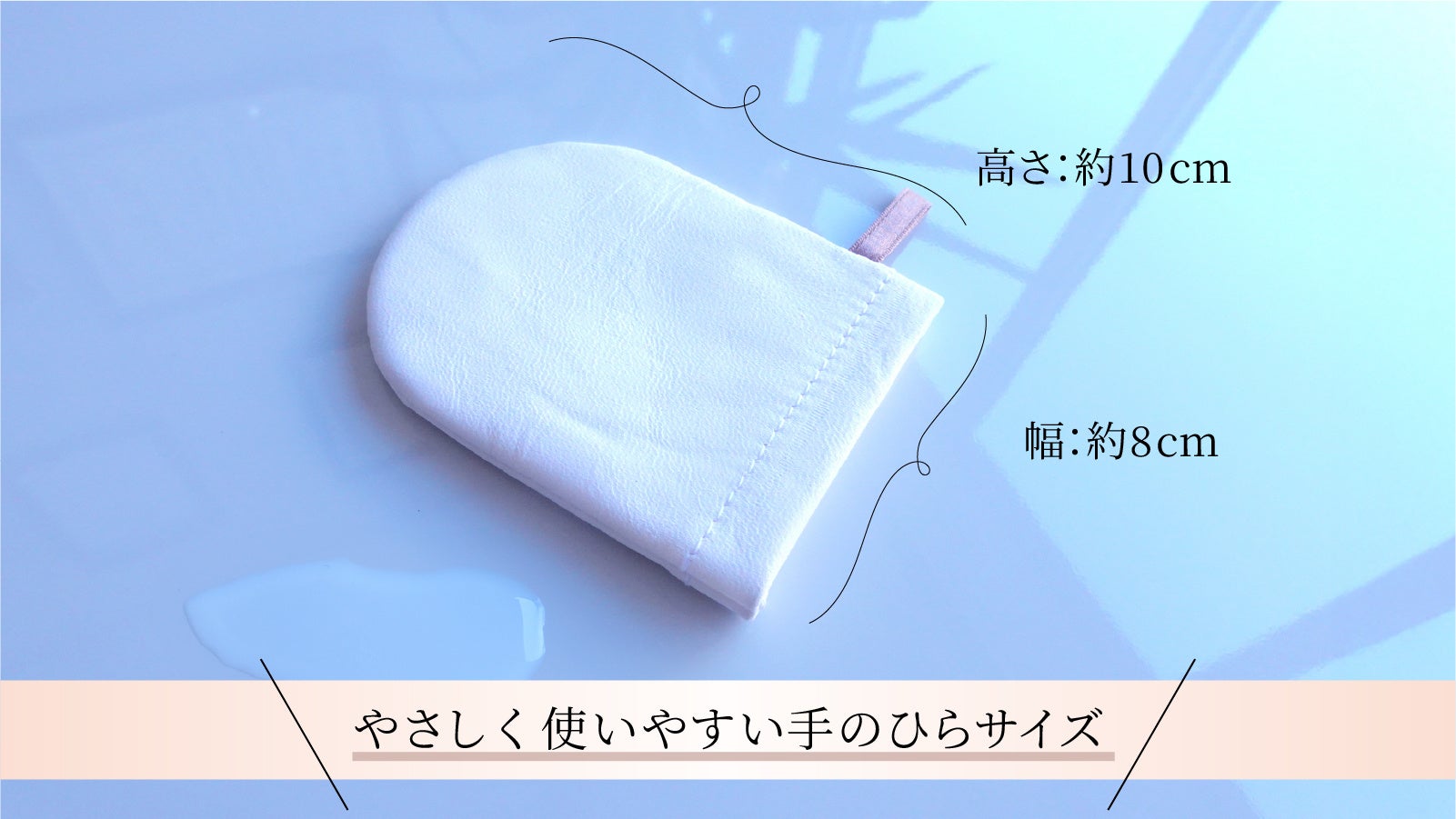 サイズは、長さ約10cm×幅約8cm。袋状になっており、中に指を入れて使用することもできる。