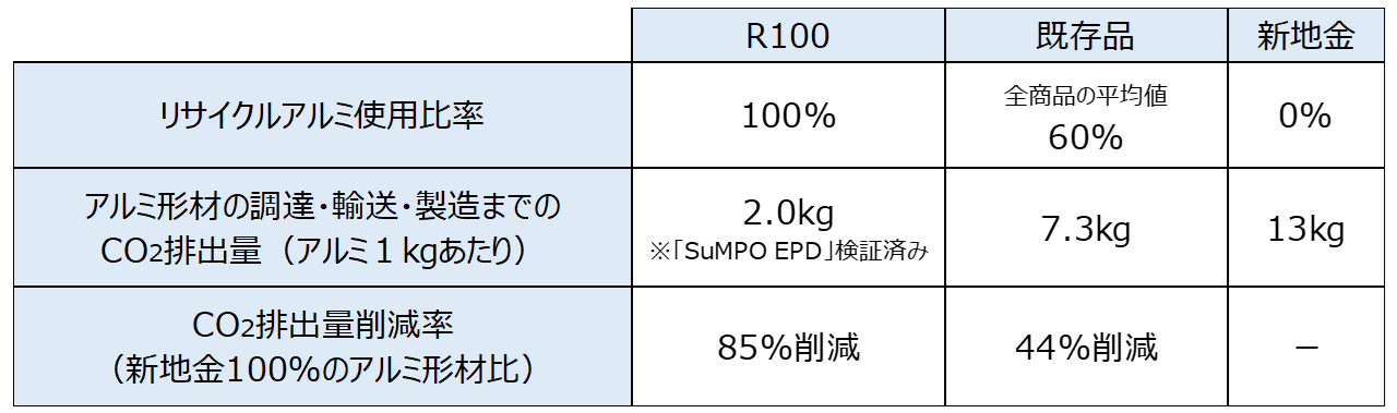 ※:「SuMPO EPD(旧名称:エコリーフ)」は、一般財団法人サステナブル経営推進機構が運営するLCA(ライフサイクルアセスメント)手法を用いて製品のライフサイクル全体(原料調達から廃棄・リサイクルまで)にわたる環境負荷情報を定量的に開示する環境ラベルです。「Re・AL」はこの第三者検証を取得しています。(https://ecoleaf-label.jp/epd/2271)