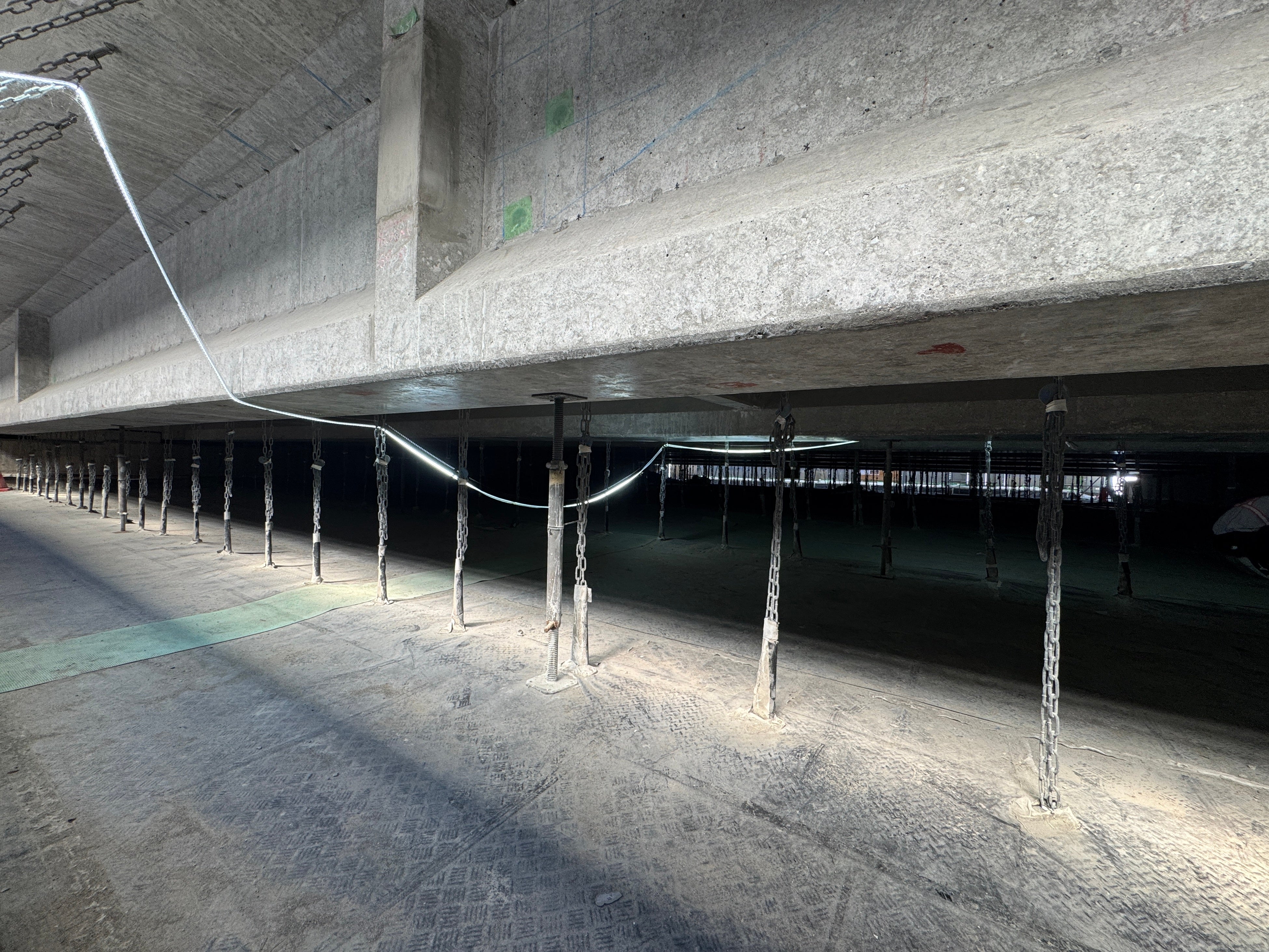従来LiDARで検知しにくかった細い吊りチェーンを障害物として正確に認識し、接触することなく自律歩行をすることに成功しました。