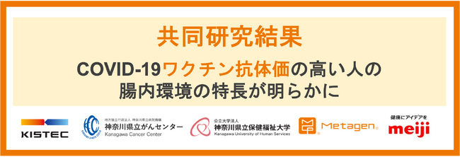 地方独立行政法人神奈川県立産業技術総合研究所(KISTEC)が中心となり、地方独立行政法人 神奈川県立病院機構神奈川県立がんセンター、公立大学法人 神奈川県立保健福祉大学、株式会社メタジェン、株式会社明治、明治ホールディングス株式会社にて進めている共同研究において、新たに腸内環境の解析を行い、抗体価との関連を明らかにしました。一連の研究成果は、2025年10月25日に国際学術誌 Gut Microbes Reportsに掲載されました(https://www.tandfonline.com/doi/full/10.1080/29933935.2025.2568927)。