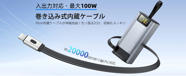 【高出力×堅牢ボディ】RORRY、100W急速充電対応の20000mAhモバイルバッテリー「H4」が最大43%OFF!アルミ合金製で放熱性・安全性を強化