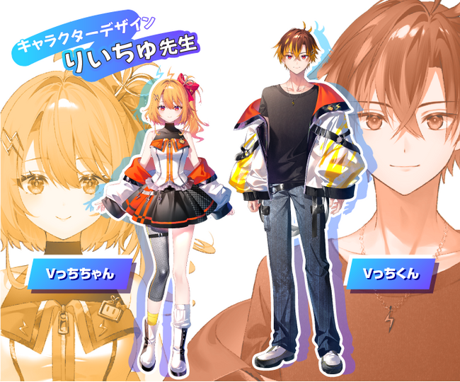 ふわっち公式Vキャラクター「Vっちちゃん」と「Vっちくん」(キャラクターデザイン:「りいちゅ」先生)