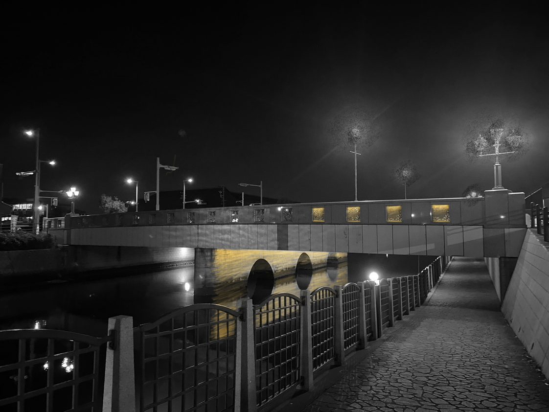 橋脚を照らし、橋下空間の心地よさを作り出します。欄干の飾り部にも照明を設け、歩道の明かりと景観の両方に寄与する実験を行います!