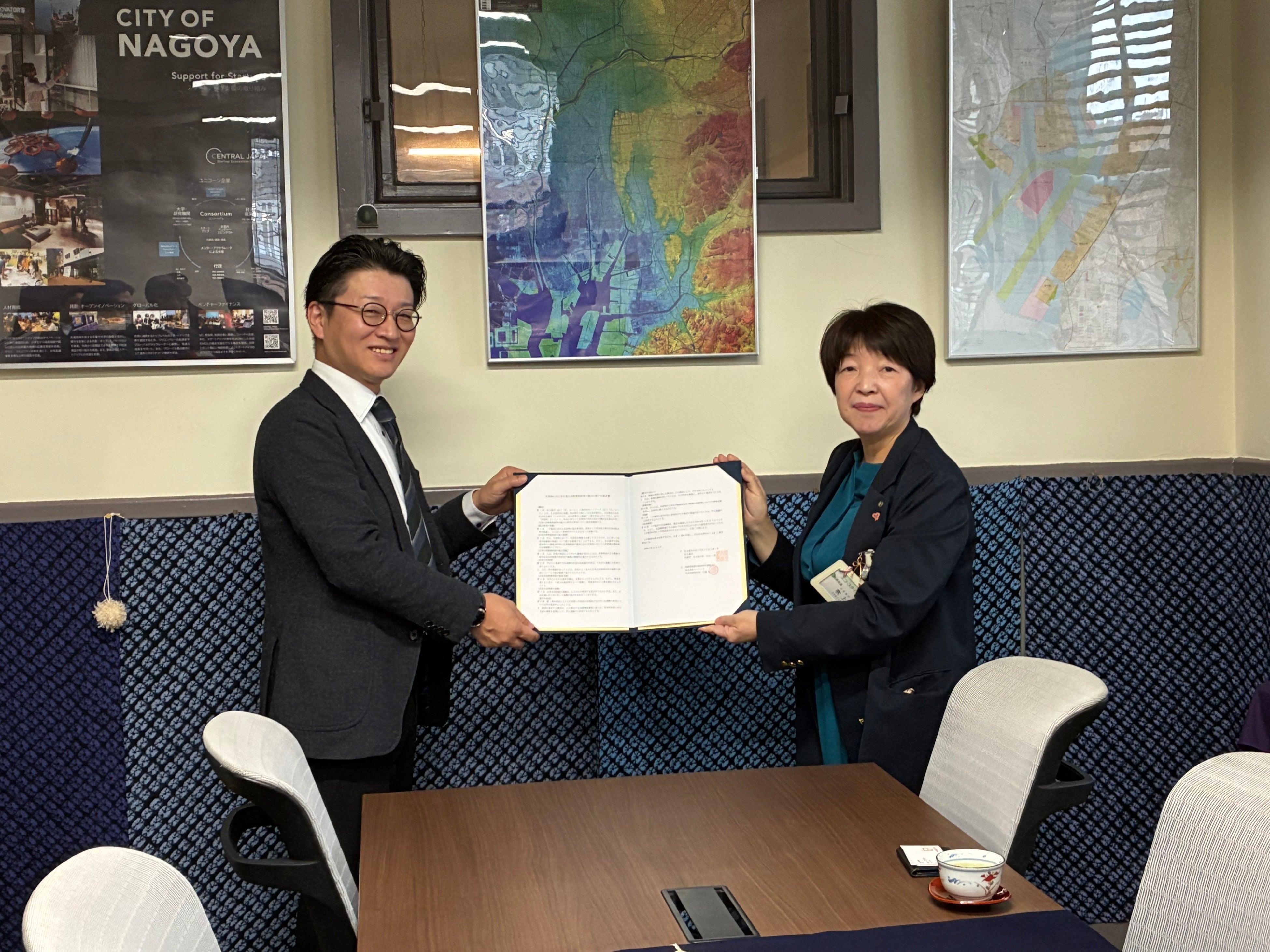 11月5日に名古屋市役所において、吹上 康代 名古屋市経済局長ご出席のもと締結式が執り行われ、協定書を取り交わしました。