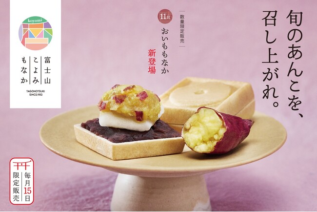 年に一度しか出会えない新登場の「おいももなか」は、11月15日の限定販売です。「富士山こよみもなか」の11月限定「おいももなか」、この機会にぜひご賞味ください。