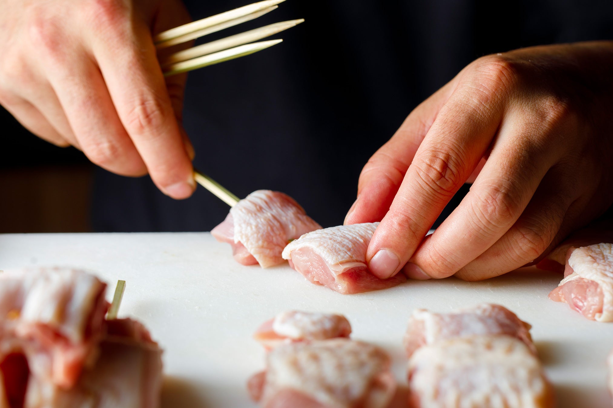 当店の焼き鳥は、一本一本、鮮度の高い素材を選び抜き、職人が手作業で丁寧に串打ちを行っています。備長炭の強い火力と遠赤外線で焼き上げることで、外は香ばしく、中はふっくらとジューシーに。素材本来の旨みをしっかりと閉じ込めます。味の決め手となる秘伝のタレは、大野醤油をベースに野菜や丸鶏をじっくり煮込んで仕上げた、深みのある味わいが自慢です。