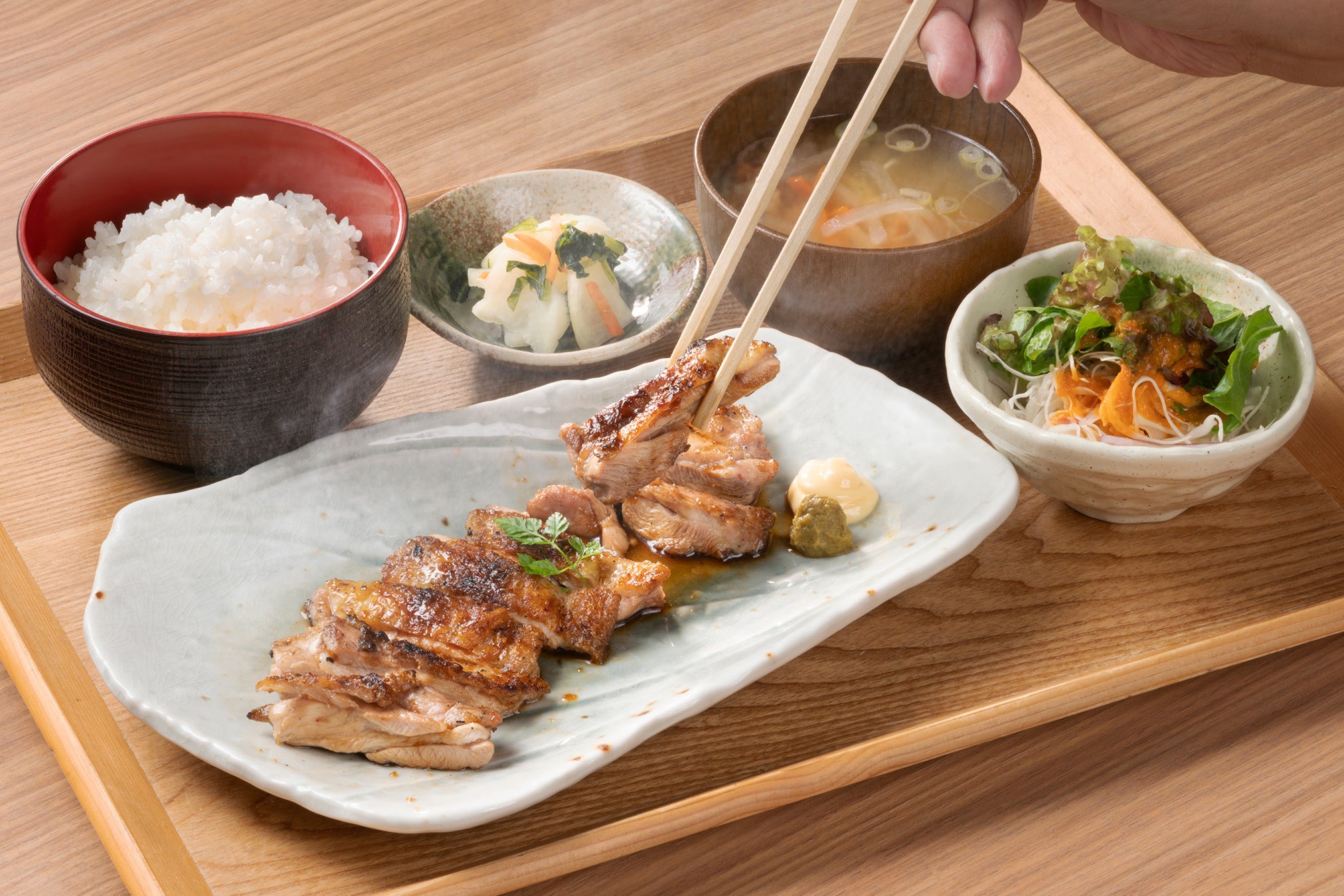 市場の活気と香ばしい炭火の香りに包まれながら、昼から気軽に串焼きや金澤おでんで“ちょい飲み”が当店ならではの楽しみ方。ご飯ものとして、「恵那どりの親子丼」や、ランチ限定定食「恵那どりもも炭火焼定食(税込990円)」「能登産豚肩ロース炭火焼定食(税込1,200円)」などもご用意しています。香ばしい炭火焼の香りとともに、しっかりとした満足感ある食事をお楽しみいただけます。