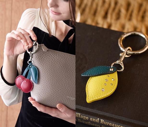 上質なイタリアンレザーを使用し、熟練の職人が丁寧に仕立てたバッグチャーム。みずみずしい果実の魅力を、煌めくクリスタルで表現。