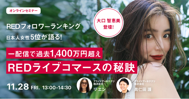 データとクリエイティブの力でマーケティングコミュニケーションを設計し、企業のマーケティングAXを支援するアライドアーキテクツ株式会社(本社:東京都渋谷区、取締役社長:村岡弥真人、証券コード:6081、以下「当社」)は、11月28日(金)に無料オンラインセミナー「日本人女性REDフォロワーランキング5位が語る!一配信で過去1,400万円超え、REDライブコマースの秘訣」を開催いたします。