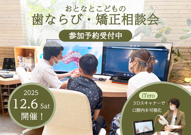 愛媛県松山市の大谷歯科矯正歯科にて、2025年12月6日(土)に「大人と子どもの歯ならび・矯正相談会」を開催します。歯ならびや咬み合わせに関する疑問に、経験豊富な矯正専門の歯科医師が個別にお答えし、口腔内スキャナー(iTero)を用い、普段は見ることができないご自身の口腔内の状態を3Dデータで確認できます。