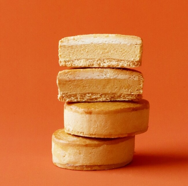 コク深いキャラメルソースに、マスカルポーネとあさぎり牛乳を合わせた、まろやかでなめらかなキャラメルクリームを、さっくり軽い食感のバターサブレでサンド。