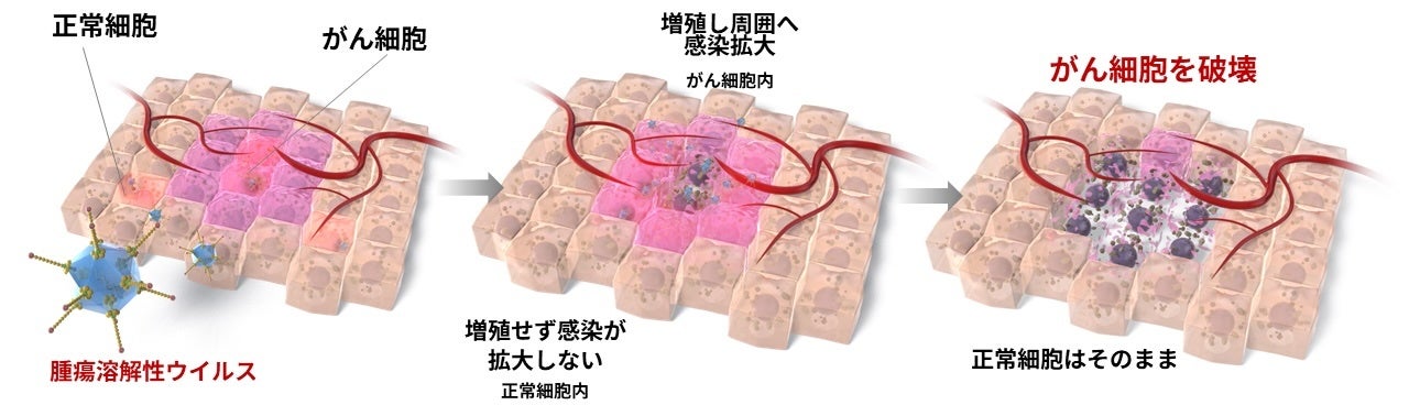 サーブ・バイオファーマは、国立大学法人鹿児島大学が独自開発した腫瘍溶解性ウイルスSurv.m-CRAシリーズの社会実装に向けて研究開発を進めています。腫瘍溶解性ウイルスは、正常細胞は傷害せず、がん細胞だけで増殖し、がん細胞を選択的に殺傷するため、高い治療効果と安全性を有するがん治療薬として期待されています。