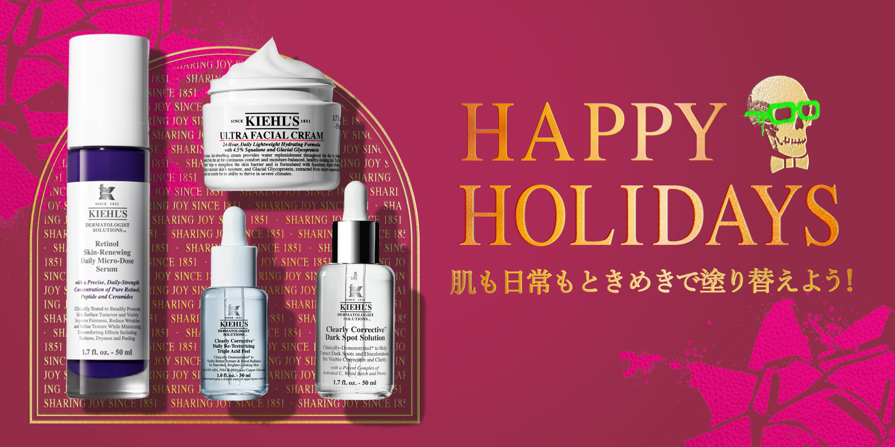 ニューヨークのアポセカリー(欧米などの調整薬局)として誕生した<キールズ>。科学・ハーブの知識を基に、170年以上スキンケア商品を届けてきました。その<キールズ>が贈るホリデー限定POP UPは、「肌も日常もときめきで塗り替えよう」をテーマに、ホリデーにぴったりなコフレや特別な特典をお届けします。