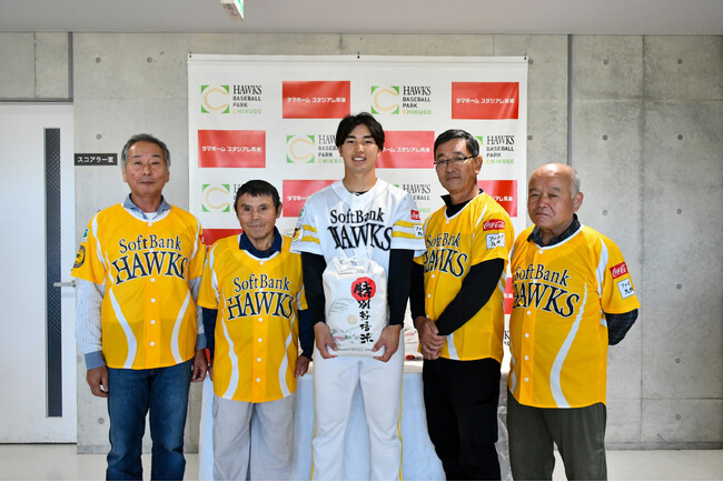 この取り組みは、HAWKSベースボールパーク筑後が開業した2016年以来毎年実施されており、今回で10回目を迎えます。地域で収穫された新米を、若鷹寮で生活をしながら支配下入りを目指して練習に励む選手達へ届けることで、地元からの温かい応援の気持ちを伝えています。