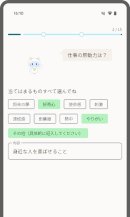 簡単なアンケートをもとに、仕事を通じて大切にしたいこと(価値観)、心惹かれる分野(興味)、得意なこと(強み)など、将来のキャリアを考えるうえで核となる要素を自動的に見つけ出します。
