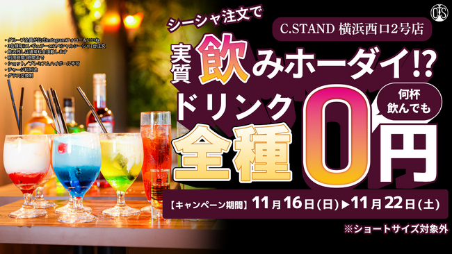 横浜駅西口にシーシャカフェ&バー「C.STAND」2号店が登場。全品ドリンク0円キャンペーン開催、話題のチル空間をコスパ良く楽しめる新拠点。