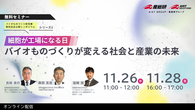 2025年8月5日に、国立研究開発法人 産業技術総合研究所にて、バイオものづくり研究棟の開所式、および開所記念公開シンポジウムを開催しました。開所式の中で、大変ご好評いただいた開所記念公開シンポジウムを抜粋編集し、再配信シリーズとしてお届けします。