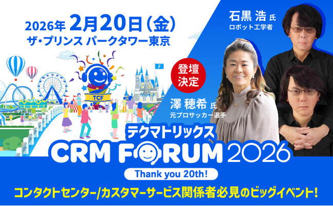 「テクマトリックス CRM FORUM 2026」コンタクトセンター関係者必見のビッグイベント20回目はリアル開催~石黒浩氏・澤穂希氏の登壇決定~