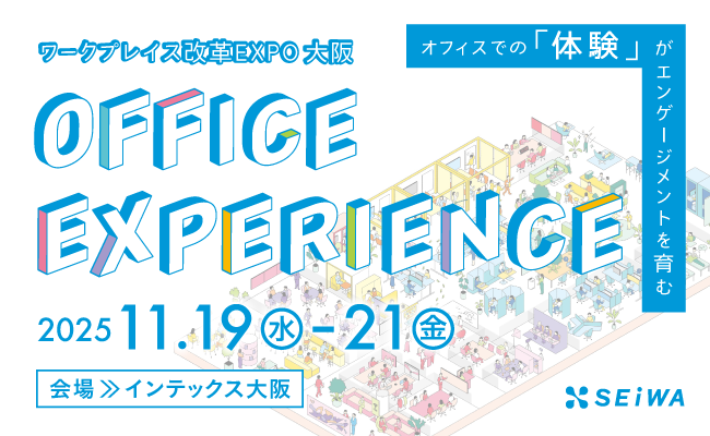 株式会社清和ビジネス(本社:東京都中央区 代表取締役:勝本 浩史)は、2025年11月19日(水)から11月21日(金)に開催される「ワークプレイス改革EXPO(大阪)」にて、『OFFICE EXPERIENCE(オフィスエクスペリエンス)』をテーマに出展いたします。