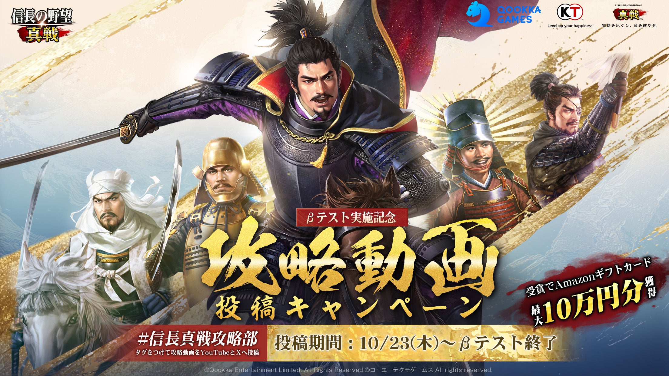 概要:「#信長の野望真戦」と「#信長真戦攻略部」のタグをつけて、ゲーム序盤攻略/部隊編成/技能修習ゲームで得た経験と知識、解説や紹介などをYouTubeに投稿しXで共有しましょう!最大10万円分のAmazonギフトカードが当たるチャンス!