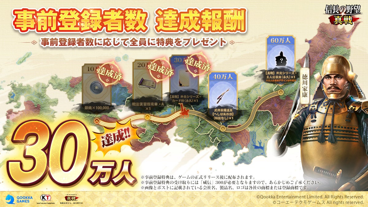 Qookka Gamesは、歴史シミュレーションに特化したグローバル戦略ゲームブランド「真戦」シリーズの最新作として、コーエーテクモゲームスの『信長の野望・新生』の公式ライセンスを取得し開発したスマートフォン向けゲーム『信長の野望 真戦』において、事前登録者数が30万人を突破したことをお知らせいたします。