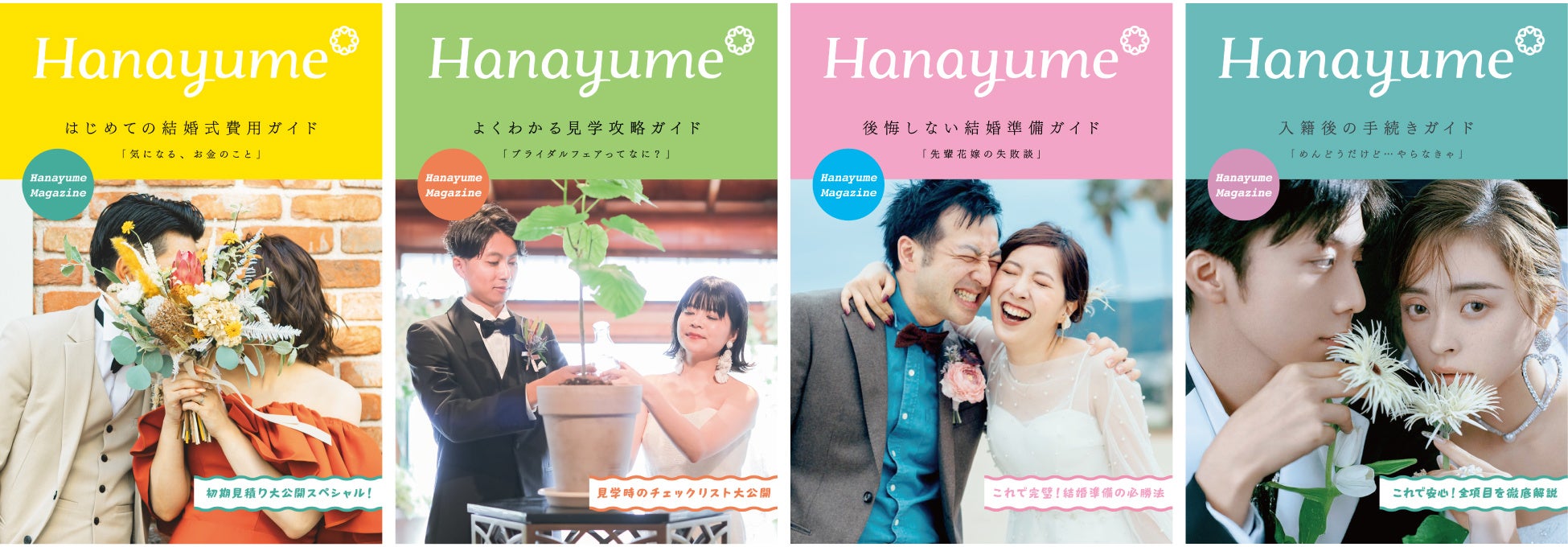 「Hanayume Magazine」は、結婚準備の悩みを、わかりやすく・楽しく解決できるヒントを提供する、結婚式場情報サイト『Hanayume(ハナユメ)』オリジナルのダウンロードコンテンツです。入籍から式場探しまで、カップルが安心して結婚準備を進められるよう、リアルな情報と実用的なノウハウをお届けします。