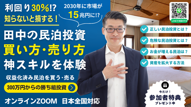田中の民泊投資|民泊を買うのも売るのも融資も学ぶのも